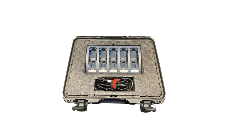 A dedicated charging and storage solution for FreeSpeak II beltpacks. This package combines Clear‑Com’s 5‑Way Battery Charger with a rugged Nanuk 930 protective case, providing safe transport and centralized charging for professional wireless intercom operations.