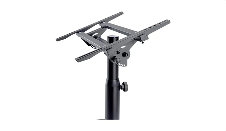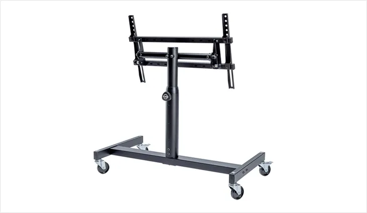 A professional monitor stand designed to support large-format displays used for confidence monitoring and presentation support. Provides stable placement for screens up to 65 inches in live event and production environments.