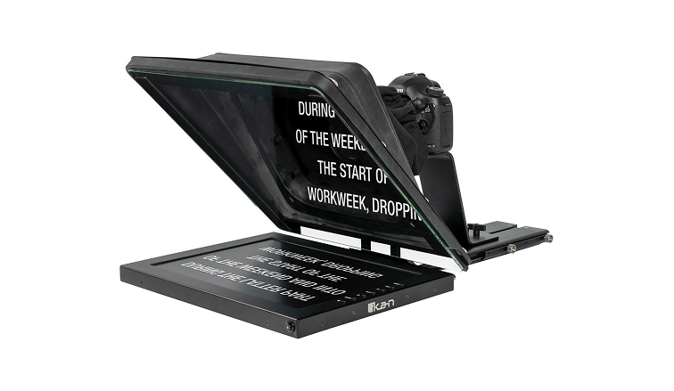The PT4700-SDI Professional 17″ High-Bright Teleprompter from ikan offers three interchangeable camera mounts providing support for a wide range of cameras. One fits DSLR/mirrorless cameras, one is for small to large camcorders, and the third is for VCT plates for attaching ENG cameras. A 17″ monitor, a collapsible hood, and one of the camera mounts easily attach to the base of the teleprompter, and the base can then be mounted on a tripod or pedestal via multiple 1/4″-20 and 3/8″-16 mounting threads. The monitor features a display resolution of 1280 x 1024.
