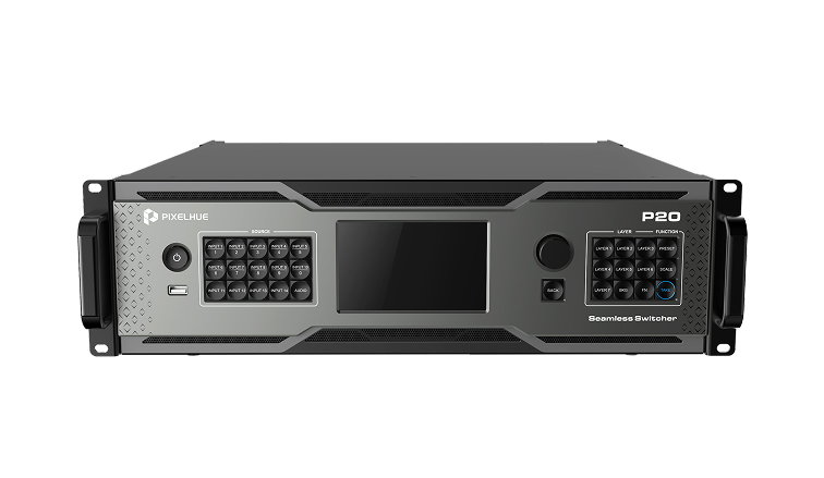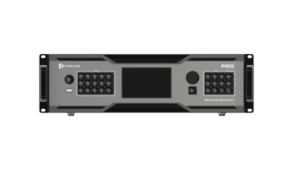 The P20-DS supports up to 12 DL layers (2Ă—MAIN+10Ă—PIP) or 8 DL layers (4Ă—MAIN+4Ă—PIP). Layer layout is customizable and a variety of layer effects such as DSK, mask, crop, flip, cut & fill, border, shadow and Key Frame are supported. Up to 128 presets can be saved for easy recall. High-resolution images can be captured from live inputs and outputs and used as BKG. In addition, the P20-DS allows for free conversion between SDR, HDR10 and HLG, and the P20-DS supports Dante audio networking (32×32 channels). Control P20-DS in PixelFlow software on Windows, Mac, or the U5 series controllers, and integration with Bitfocus Companion is also available.
