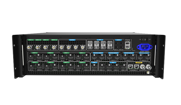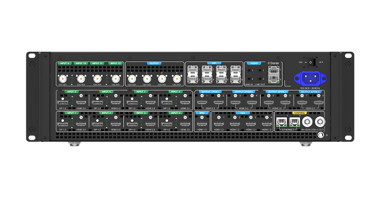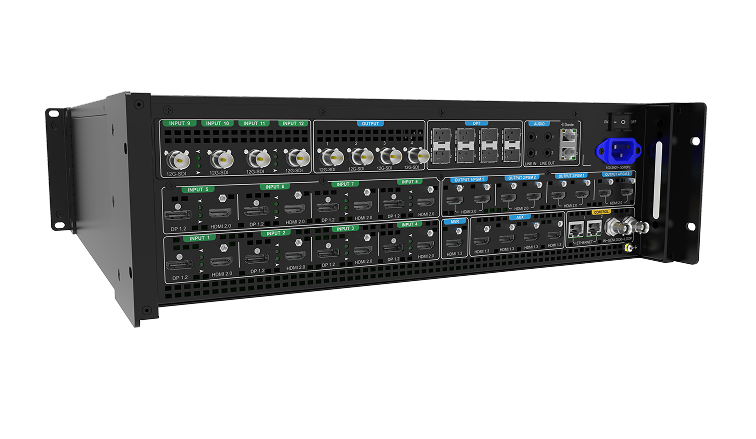 - 12 Inputs (4x 12G-SDI, 8x selectable HDMI 2.0 or DP 1.2)