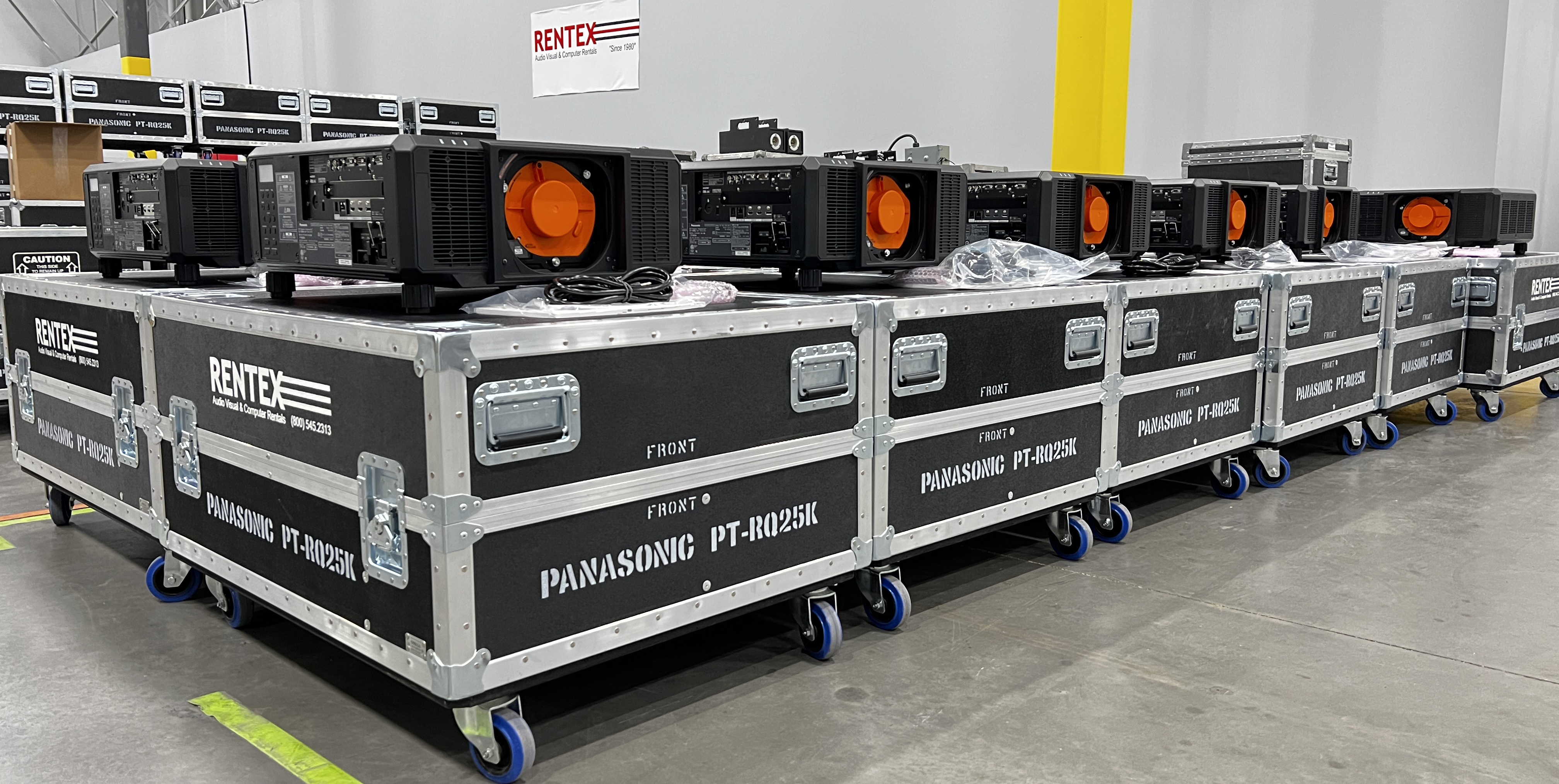 The PT-RQ25K is 40% smaller and 35% lighter than the previous generation of the trusted 20K Panasonic 3-DLP projectors and the PT-RZ21K/RQ22K. In fact, the size is much closer to the PT-DZ10KU that gave us just 10,000 lumens a few years ago. That size and weight advantage provides a wide impact on case size, shipping cost, and how this powerhouse can be used. New features for the platform include the Smart Projector Control smartphone app with NFC function, Remote Preview Lite, and as with ALL Rentex Panasonic 3-DLP projectors, the Geometry Manager Pro license is included.