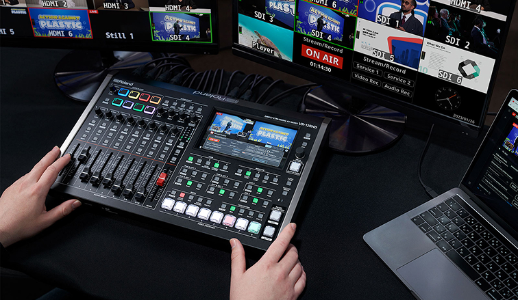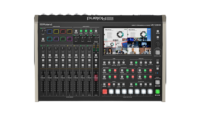 With the VR-120HD Direct Streaming AV Mixer, a single operator can confidently manage hybrid live and online productions without the need for external gear and the staff to run it. Offering extensive audio and video I/O, a large touchscreen, and hands-on controls, this portable powerhouse gives you the tools you need to take on any mid-level production. Advanced Roland AV features make difficult tasks simple with customizable workflows, deep automation functions, remote PTZ camera control, one-touch macro sequencing, streaming over LAN and USB, and much more.