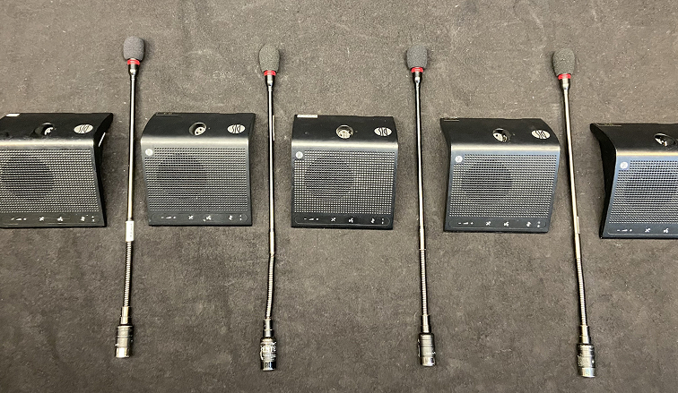 - Portable tabletop discussion units with professional gooseneck microphones