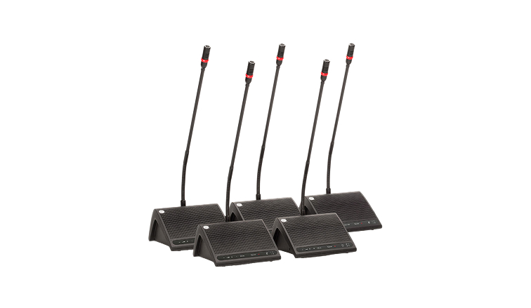 A five‑unit expansion package for Shure DIS digital discussion systems. This bundle includes DC5980P portable discussion units with professional gooseneck microphones and cabling, making it ideal for extending participant capacity in existing DIS‑CCU‑based installations.