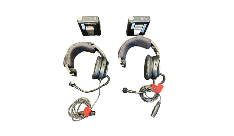 - (2) Telex HR‑1 heavy‑duty single‑ear headsets
